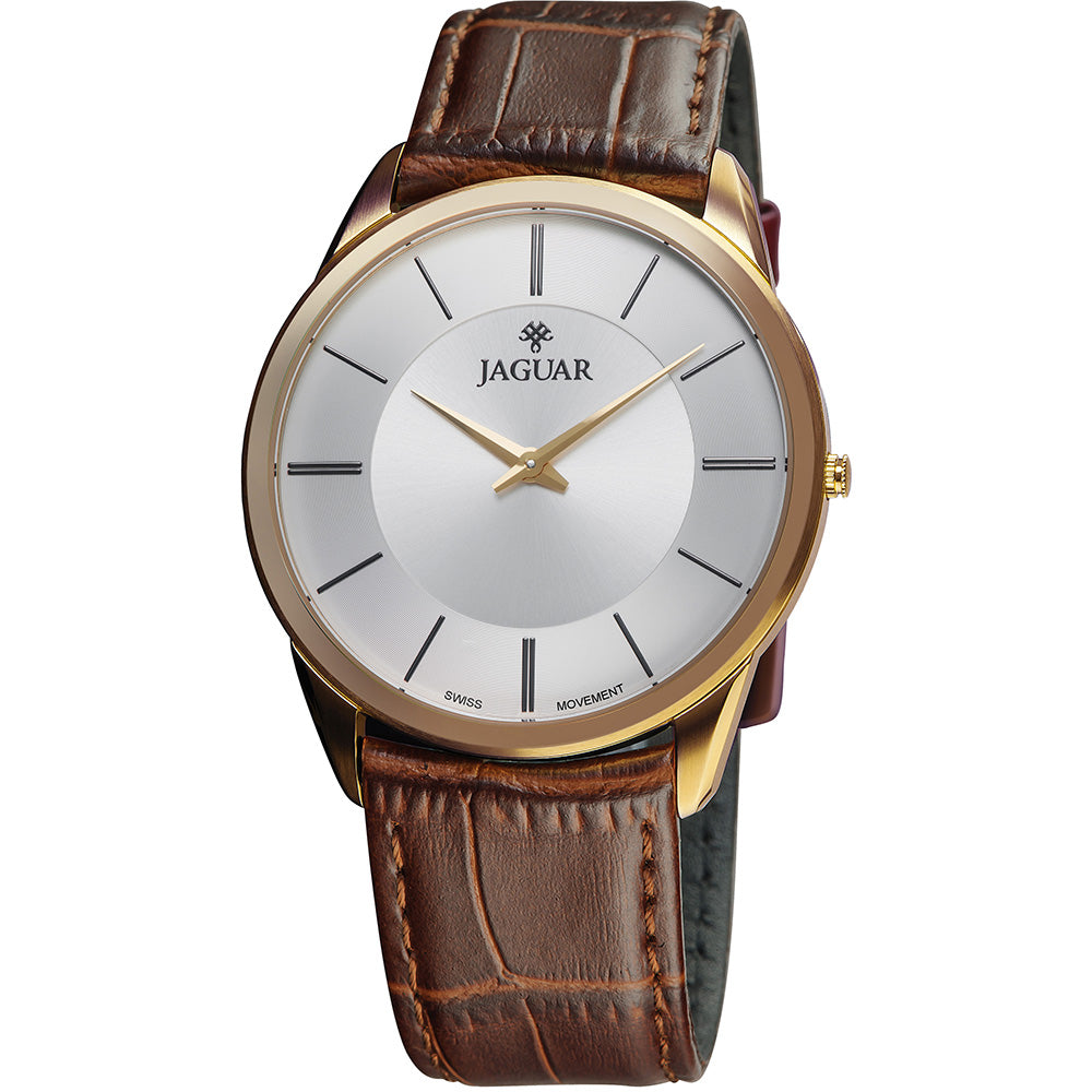 O relógio Jaguar Aura é elegante e minimalista, perfeito para quem busca sofisticação e a precisão de um mecanismo suiço à quartz. Com uma caixa de aço DOURADO de 40 mm, sua pulseira de couro marrom e um mostrador prata, ele traz um design fino e leve, se adaptando perfeitamente ao pulso, proporcionando conforto e estilo. Sempre versátil e atemporal, combina com todas as ocasiões, do dia a dia ao evento mais formal. A marca Jaguar representa a tradição da relojoaria suíça, que une a excelência da manufatura, precisão, beleza e sofisticação. Suas caixas são construídas em aço inoxidável 316L com acabamento de alta qualidade (CNC), para evitar a ação do tempo. Seu movimento suíço a quartzo de alta performance garante com precisão a marcação do tempo. O vidro em cristal de safira antirreflexo resiste à riscos e confere perfeita nitidez e durabilidade.